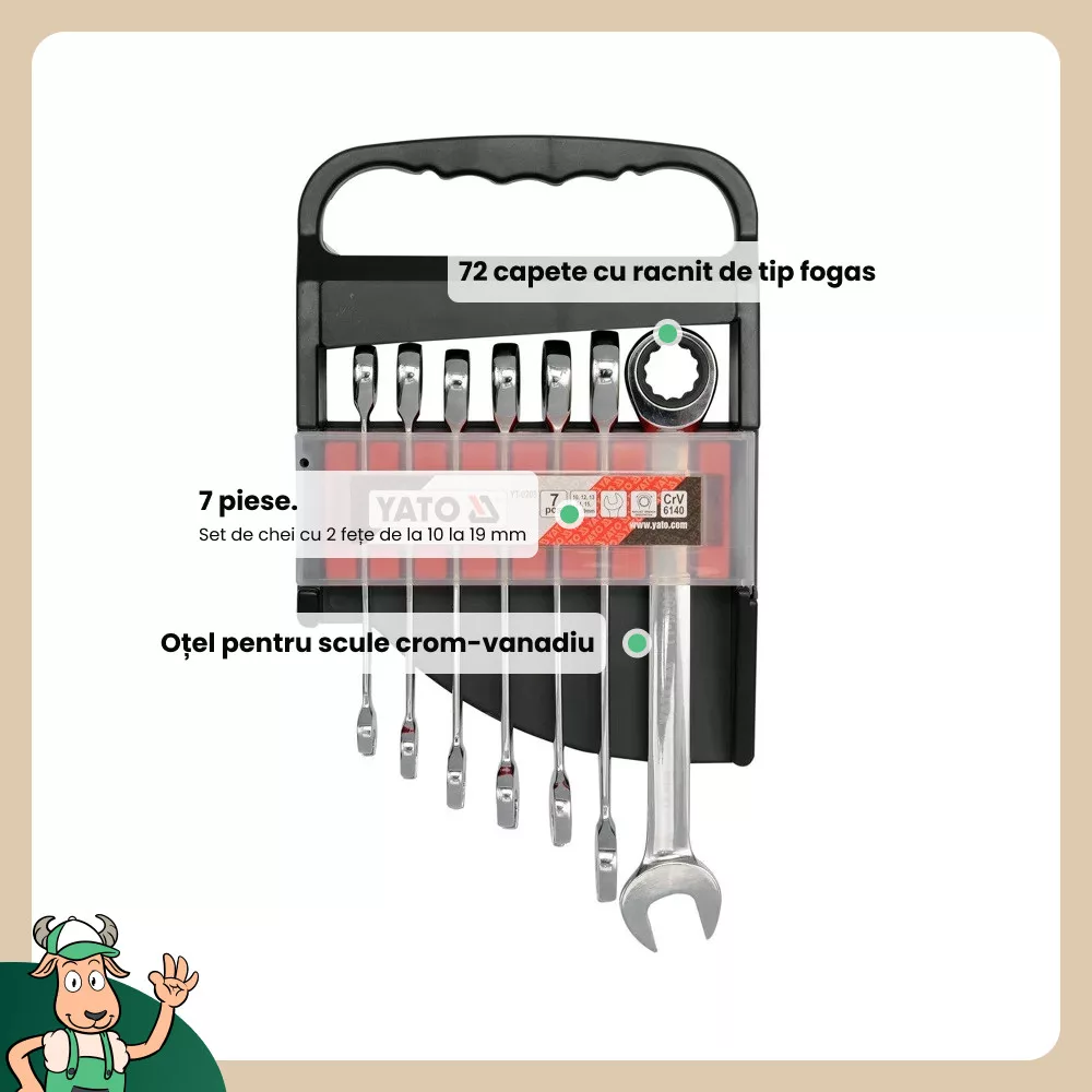 Yato racsnis csillag-villáskulcs készlet 7 részes (10-19 mm)