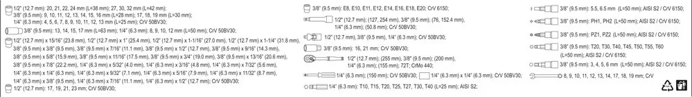 A professzionális szerszámkészlet, melyet speciális autóipari és mechanikai szolgáltatások igényeinek kielégítésére fejlesztettek ki. A dugókulcsokat kovácsolással készítették, és a keményedés előtt kalibráltak precíziós mérőeszközökkel. AS-Drive rendszerrel ellátott dugófejek, amelyek a maximális nyomatékot 25% -kal növelik, az anyák éleinek teljes védelme mellett.