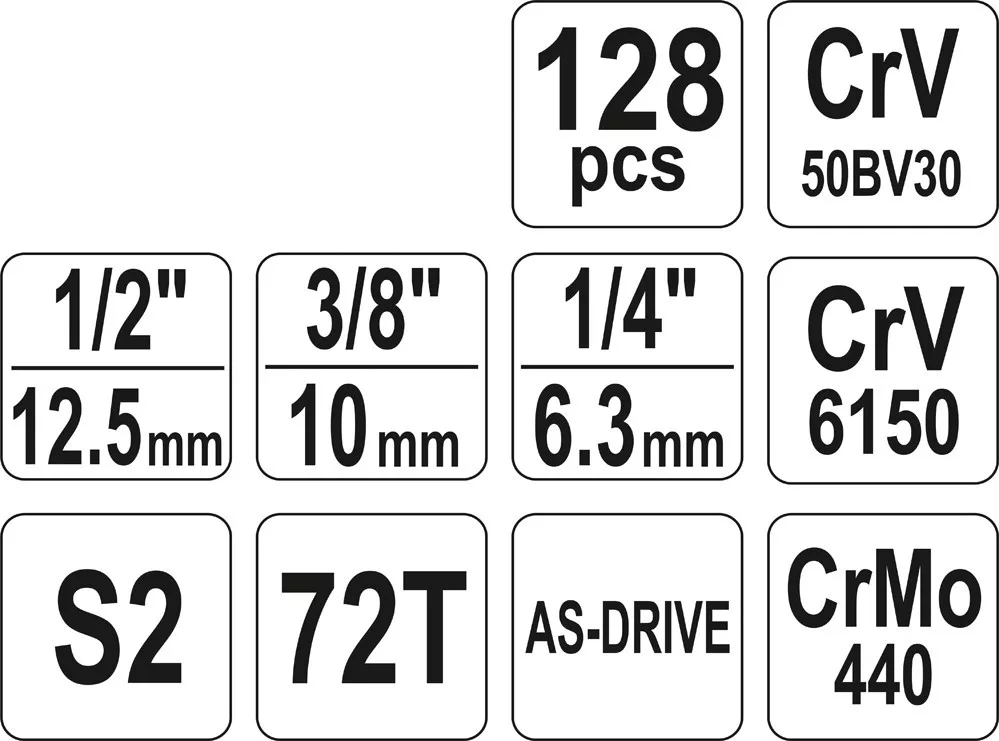 Yato dugókulcs készlet 128 részes 1/4", 3/8", 1/2" CrV