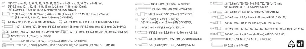 Dugókulcs készlet 128 részes, melyet speciális autóipari és mechanikai szolgáltatások igényeinek kielégítésére fejlesztettek ki.