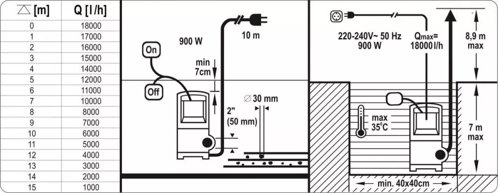 Használható háztartásokban és gazdaságokban, parcellákon, építkezéseken, a víz szivattyúzására úszómedencékből, tavakból, pincékből és ásatásokból.