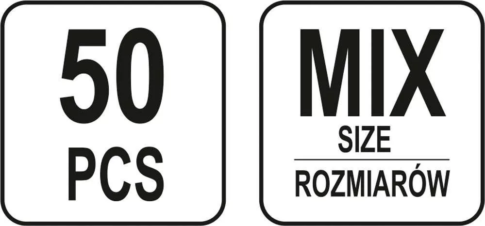 Az elektromos gyorscsatlakozók készlete két színben, amelyek megfelelnek a legnépszerűbb elektromos kábelek átmérőjének. A készlet 50 elemet tartalmaz.
