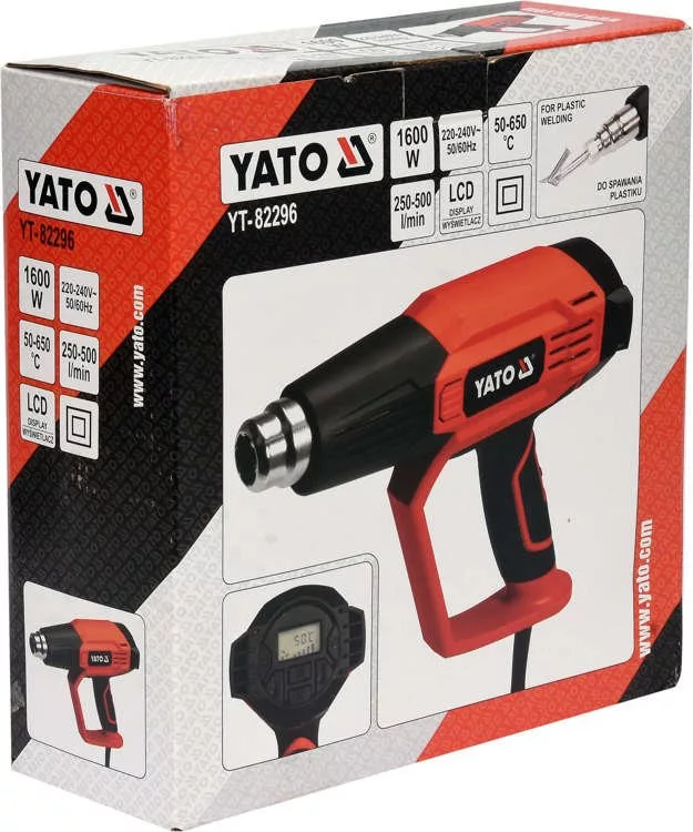 Yato elektromos hőlégfúvó tartozékokkal LCD kijelzővel 50 - 650 °C 1600 W