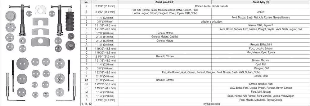 Készlet tartalma : jobbos csavarprés, balos csavarprés, ütközőlap x4, adapter aljzattal, hatlapfejű kulcs x2, csap x2, adapter x23, tartály zsírral