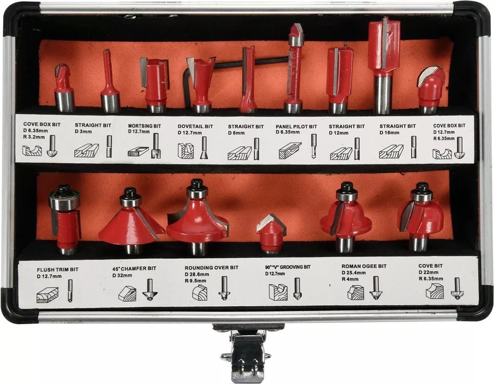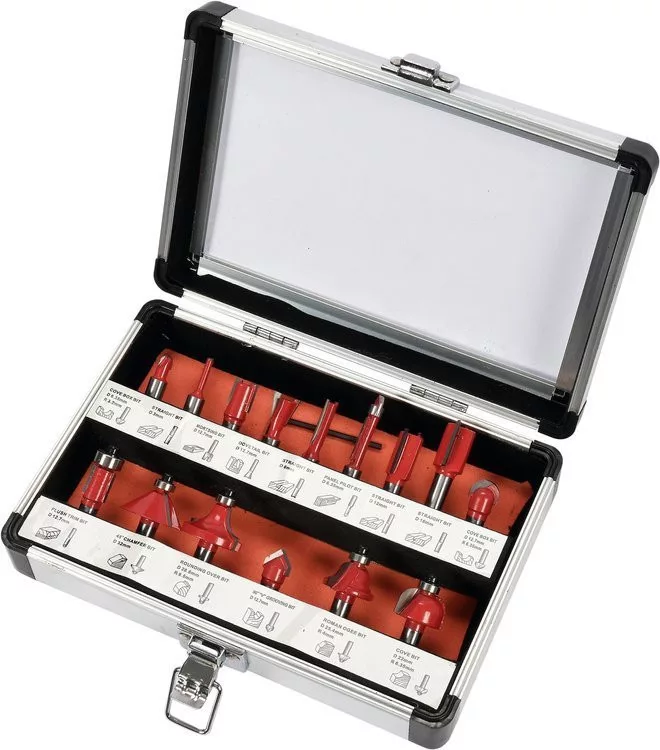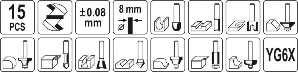 Felsőmaró készlet 15 részes, volfrámkarbid YG6X jelzéssel.