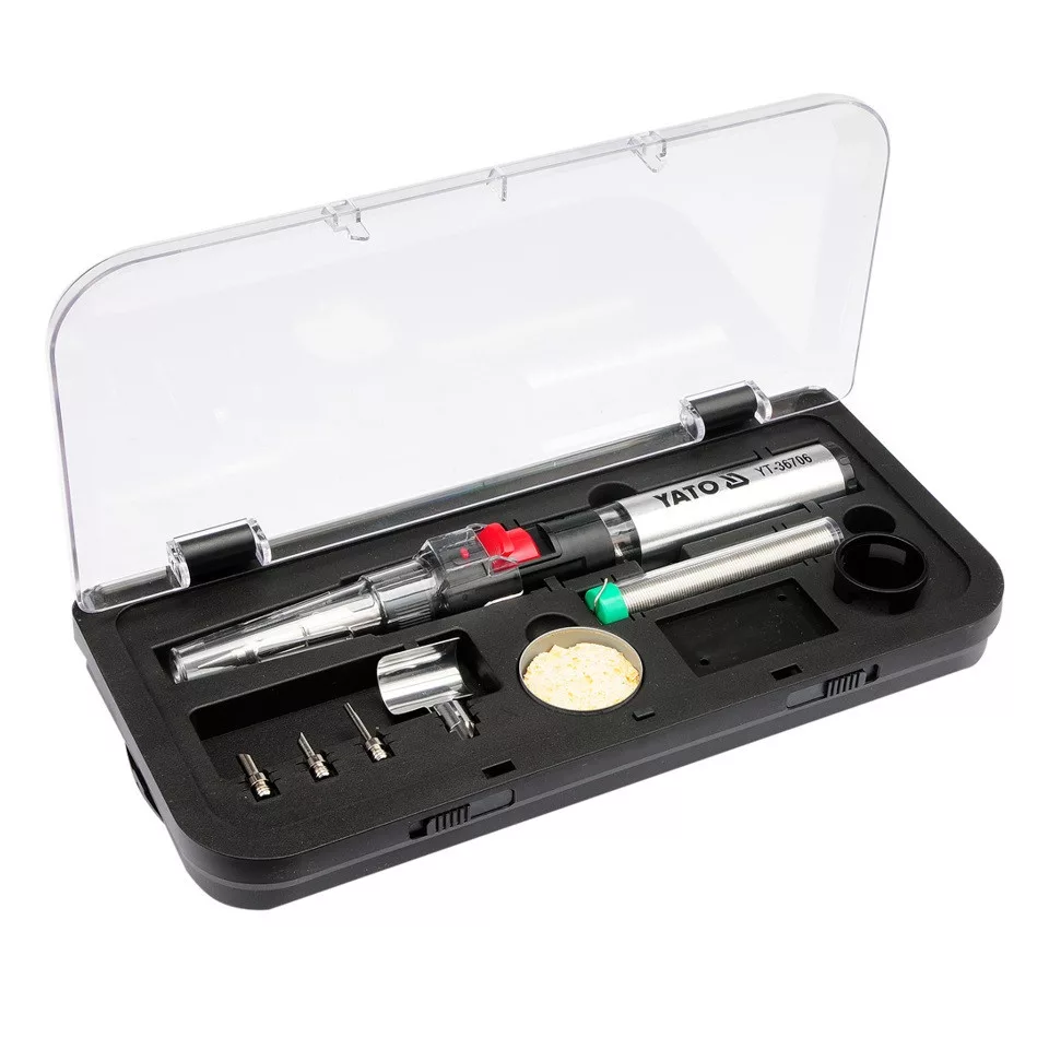 Yato forrasztópáka készlet 7 részes, bután gáz üzemű (gáz nélkül) Piezo