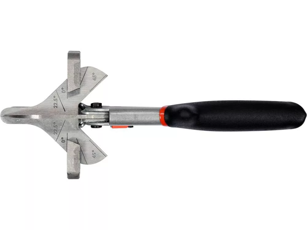 Hatékony rendszer a 0°, 22,5° és 45° vágási szögek gyors beállításához az olló tengelyétől balra vagy jobbra