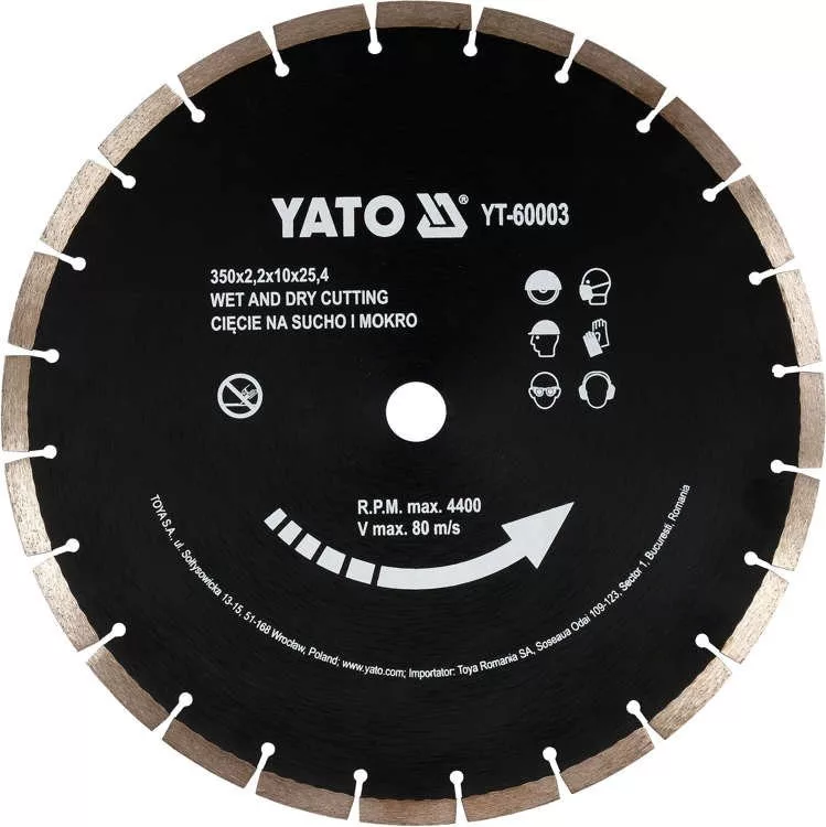 Yato gyémánt vágókorong 350 x 3,4 x 10,0 x 25,4 mm szegmentált