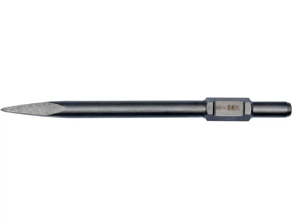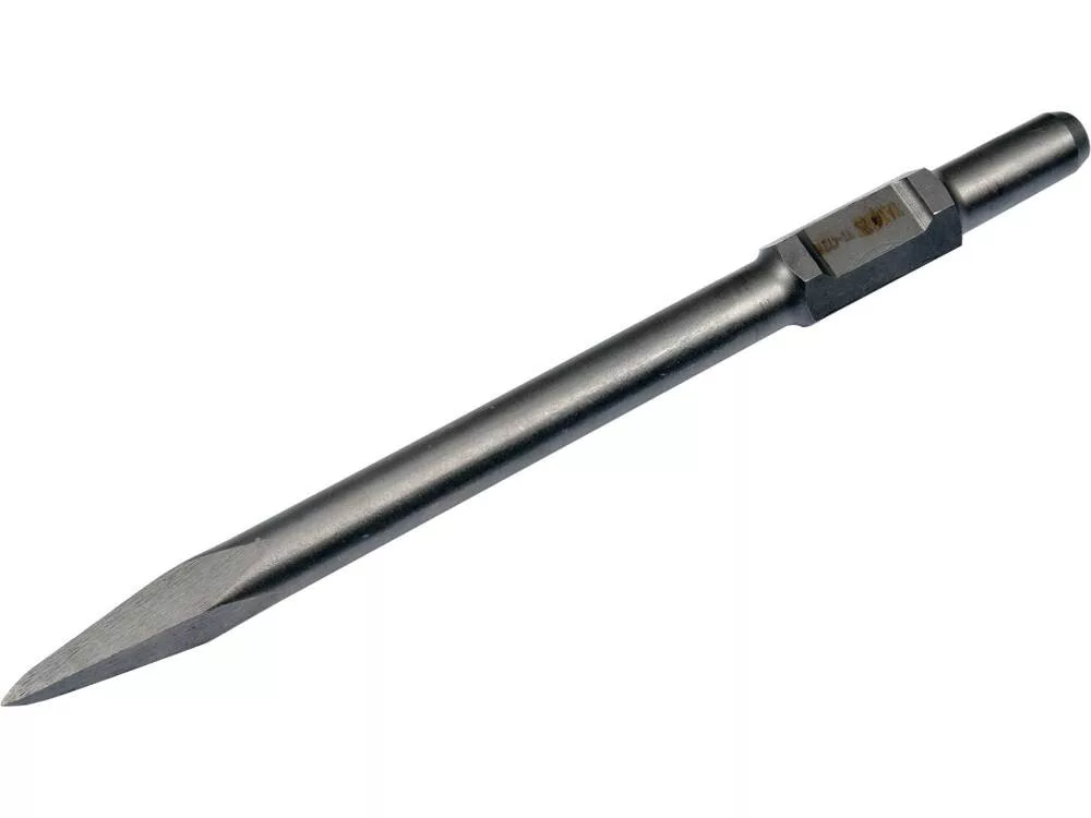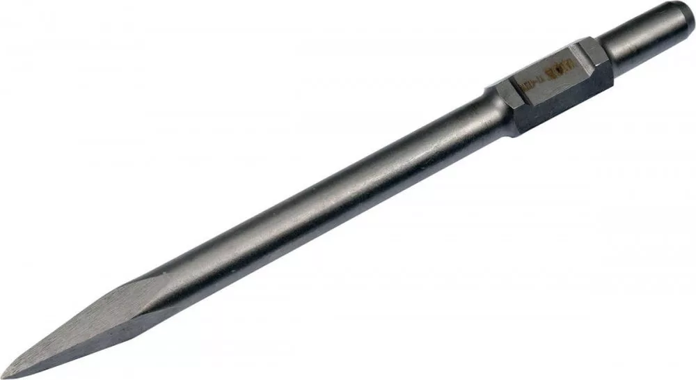 Hegyes vésőszár 410 mm-es, tartós szénacélból készült.