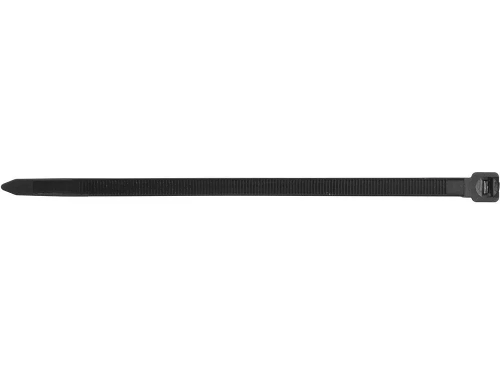 Kábelkötegelő fekete 200 x 7,6 mm-es, szakadásálló, fokozott ellenállás az UV sugárzással szemben, PA66 UL 94 V-2 műanyagból..