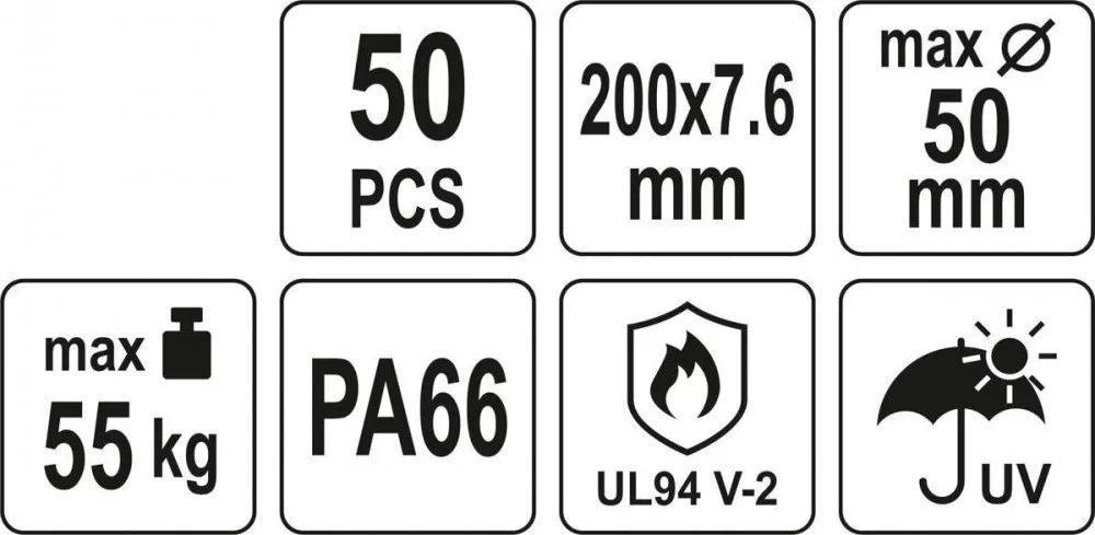 Yato kábelkötegelő fekete 200 x 7,6 mm (50 db/cs)