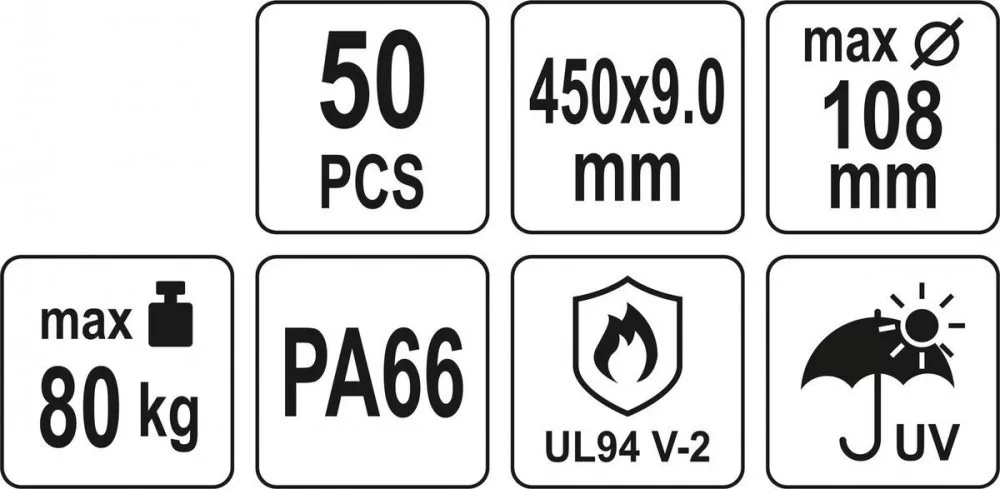 Yato kábelkötegelő fekete 450 x 9,0 mm (50 db/cs)