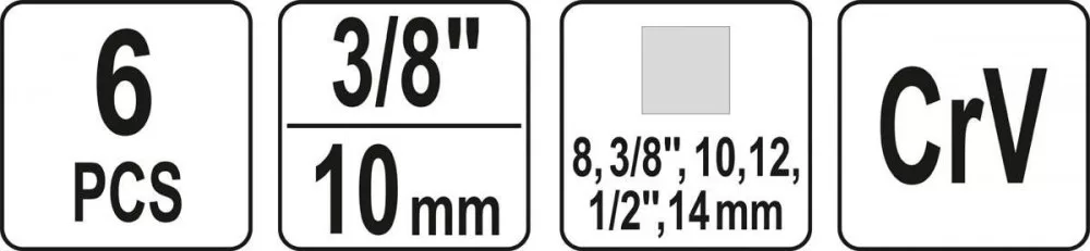 Yato olajleeresztő kulcs készlet 6 részes 3/8", 1/2", 8 mm, 10 mm, 12 mm, 14 mm 3/8" CrV