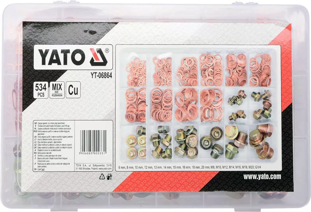 Yato olajteknő rézcsavar és alátét készlet 534 részes