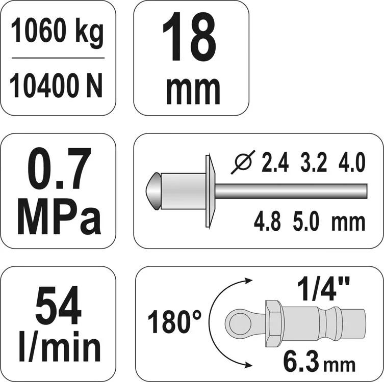 Yato pneumatikus popszegecshúzó 1/4", 0,7 MPa, 54 l/min