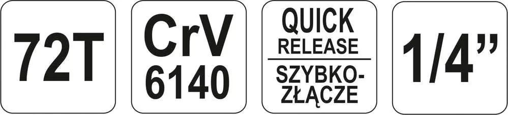Yato racsnis hajtószár 1/4" 155 mm 72T hajlított szár CrV