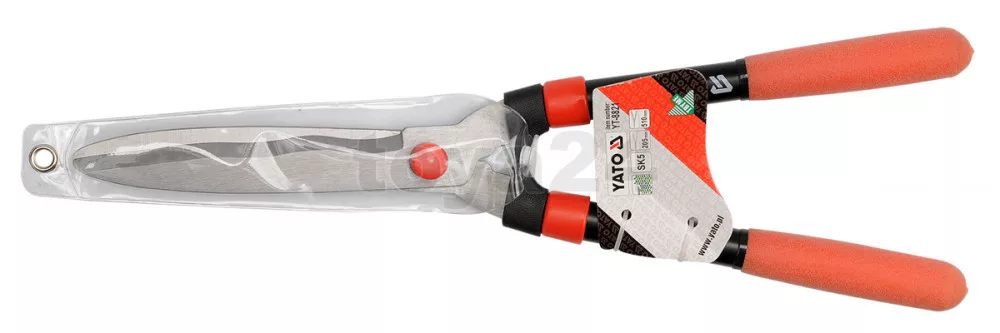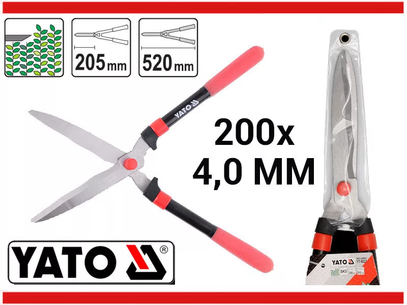 YATO márkájú sövénynyíró, teljes hossza 520 mm. A vágási hossz (penge) 205 mm.