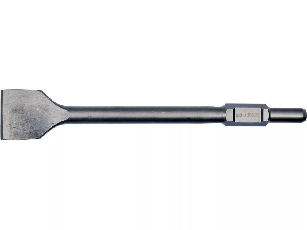 Széles vésőszár 75 x 450 mm-es, Hex befogás, tartós szénacélból készült.