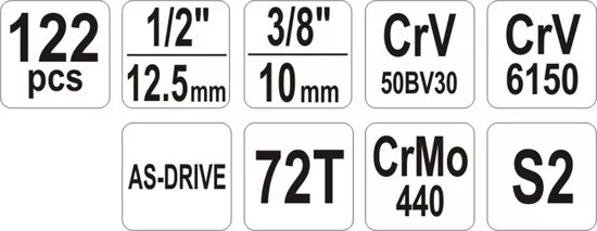 Yato szerszámkészlet 122 részes 1/4", 1/2" CrV CrMo