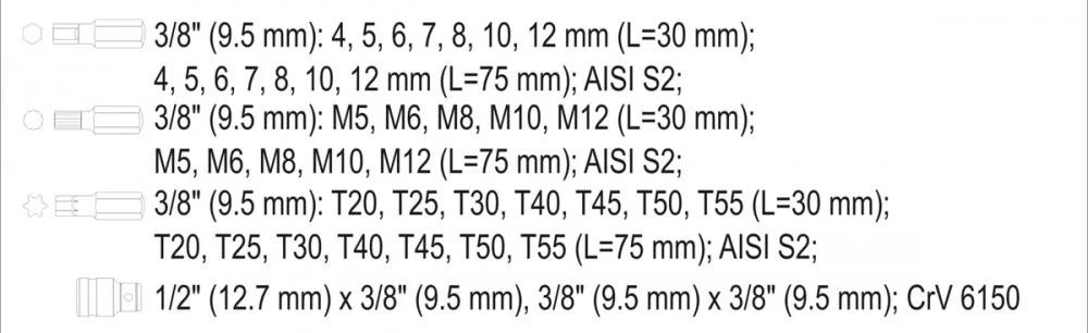 Torx: T20 /T25 /T30 /T40 /T45 /T50 /T55