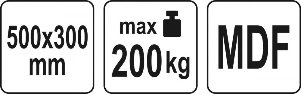 Platform méretei: hosszúság 500 mm, szélesség 300 mm, vastagság 18 mm, magasság a kerekeken 113 mm.