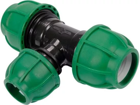Csatlakozó PE csövekhez 32 mm x 25 mm x 32 mm-es, kiváló minőségű polipropilénből.
