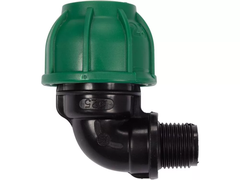 Csatlakozó PE csövekhez 90° 25 mm x 1/2", kiváló minőségű polipropilénből.