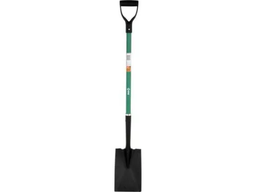 Egyenes ásó, D-markolattal, 120 cm hosszú, porszórt acélból, nyél tartós üvegszálból.