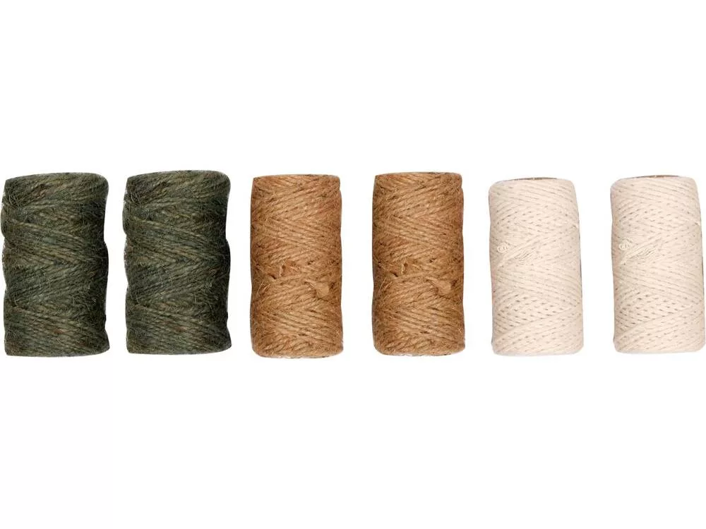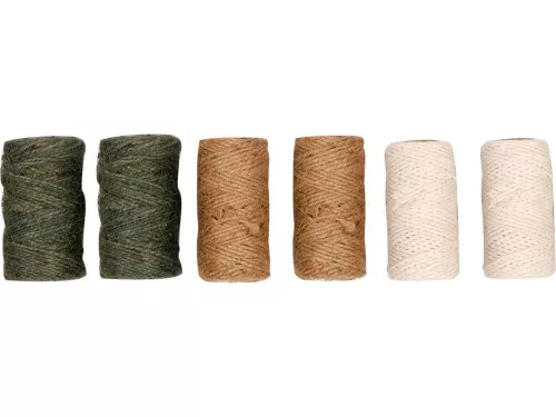 Juta és Pamut zsinór, 6 darabos készlet, fehér zöld és barna színben.