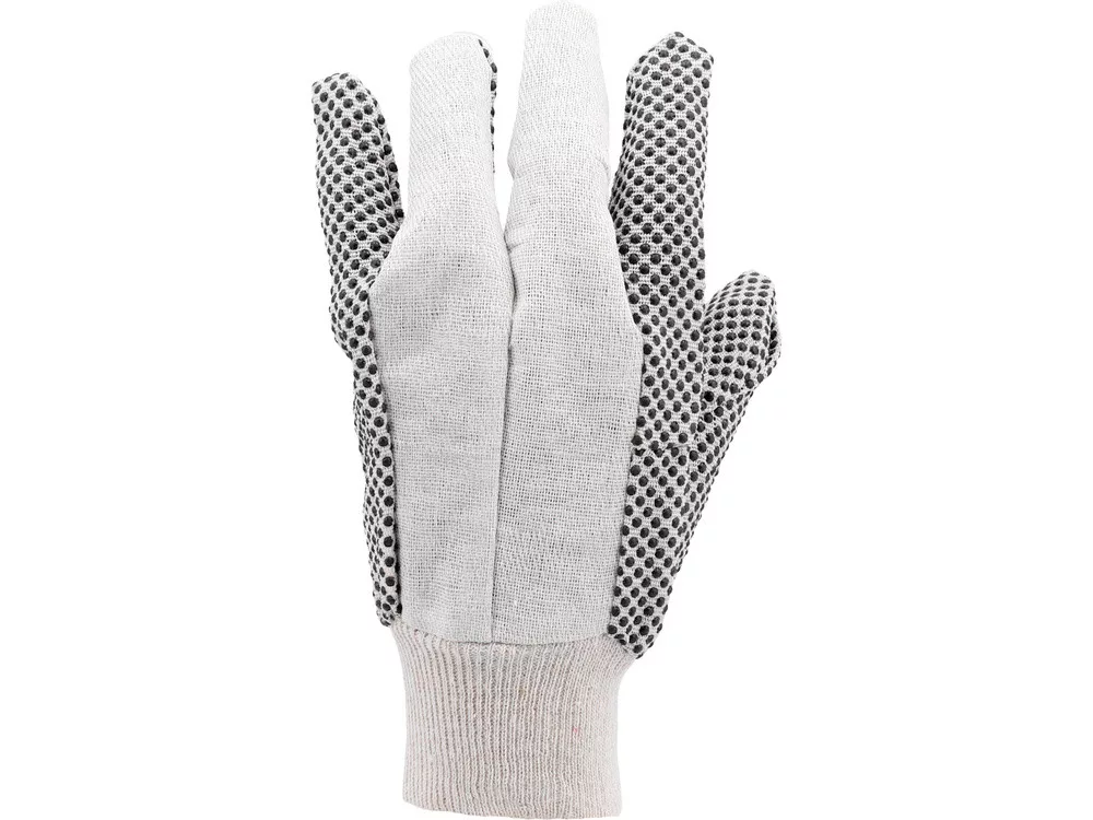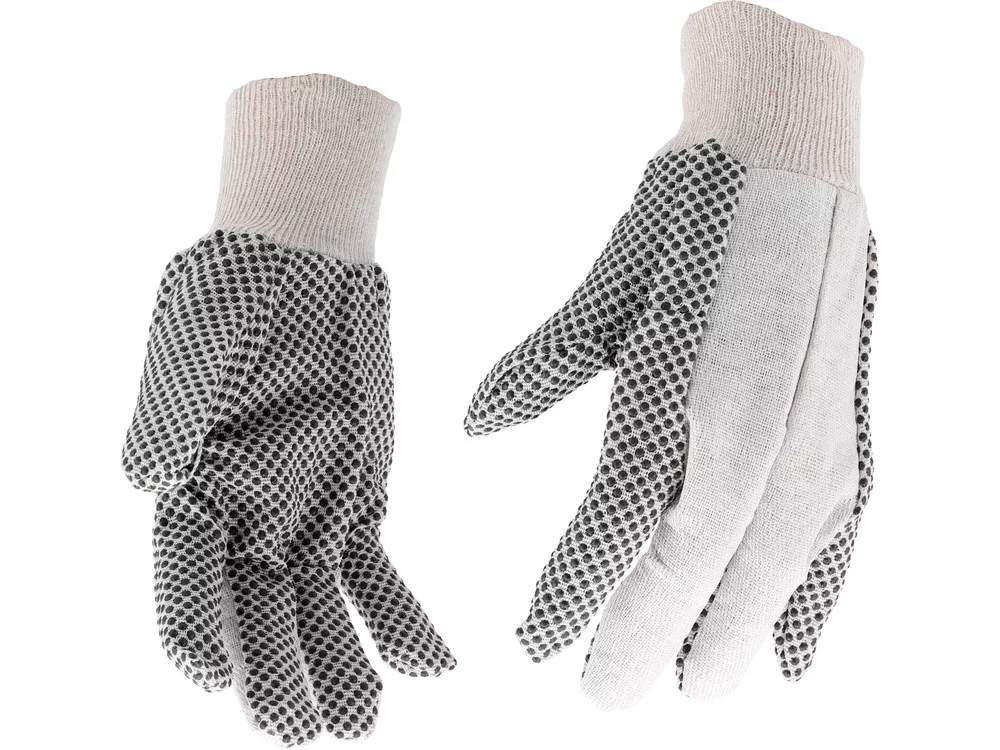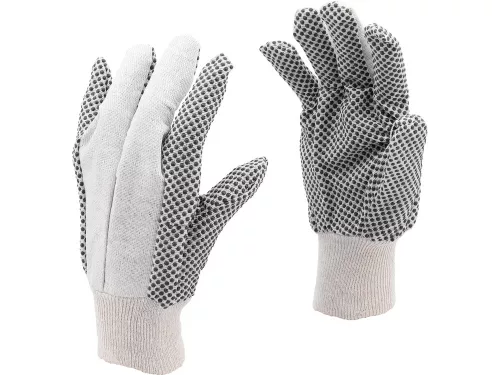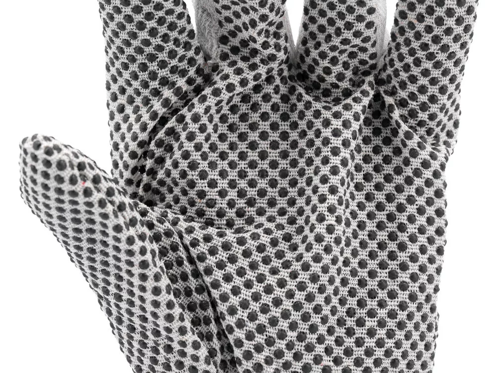 Kertészkesztyű 10-es méretű, PVC pöttyökkel, puha pamutból.