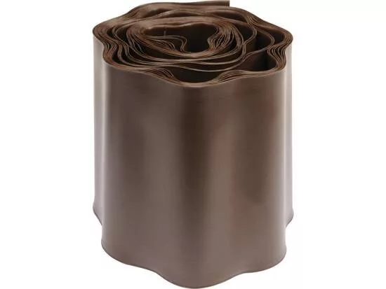 Kerti gyepszegély barna 200 mm x 9 m, rugalmas és vízálló anyagból készült.