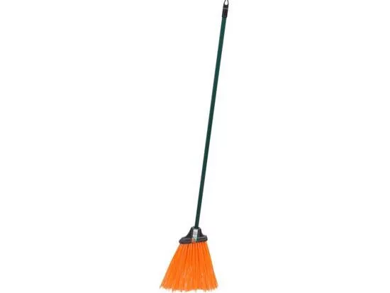 Kerti seprű műanyag sörtékkel, 275 mm hosszú. Menetes, tartós fém nyéllel, amely műanyag réteggel van bevonva.