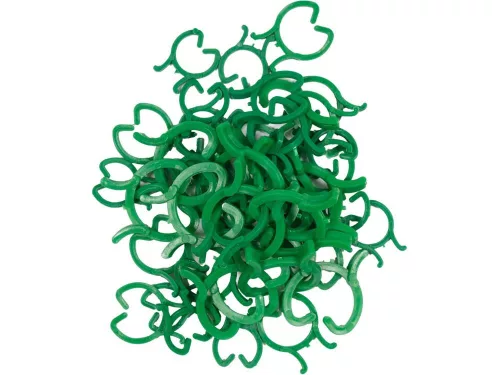 Polipropilén kapcsok a növények oszlopokhoz vagy hálókhoz való rögzítéséhez.