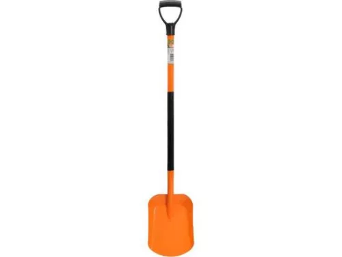 Homok- és kavicslapát éles heggyel. Ergonomikus fém fogantyúval rendelkezik,