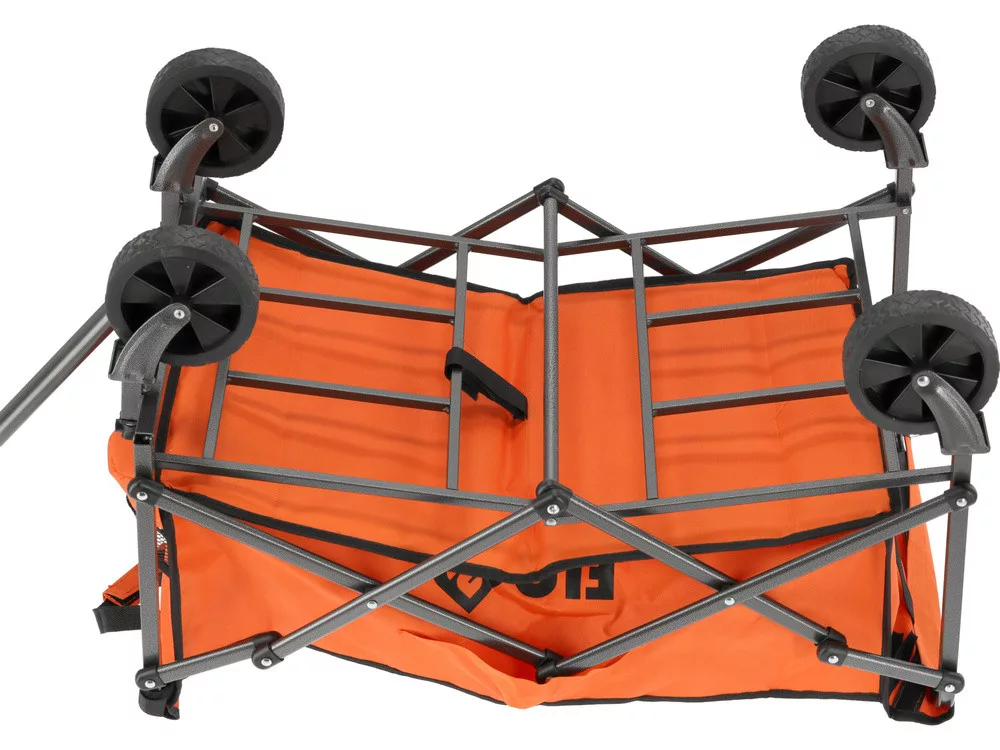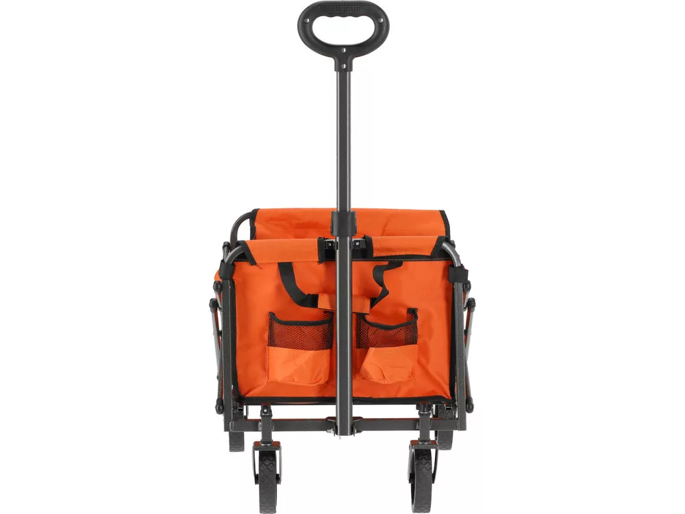 Összecsukható kerti kocsi, rendkívül strapabíró, kiválóan alkalmas kerti szerszámok, háztartási cikkek, szállítására, acél vázzal.