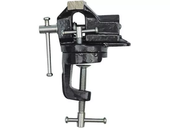Kis méretű satu.A forgótányér kialakítása lehetővé teszi a munkadarab helyzetének megváltoztatását a satupofák kinyitása nélkül.