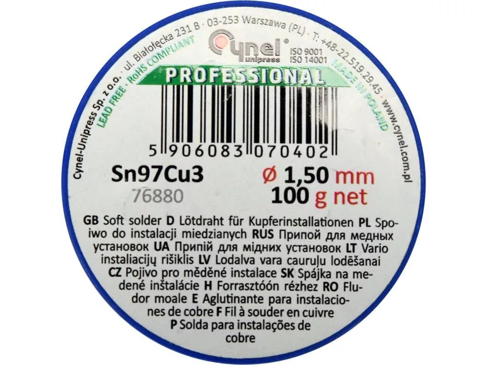 3 %-os rézadalékkal, réz- vagy sárgarézcsövek és szerelvények lágyforrasztásához. Olvadáspontja 220 °C és 310 °C között