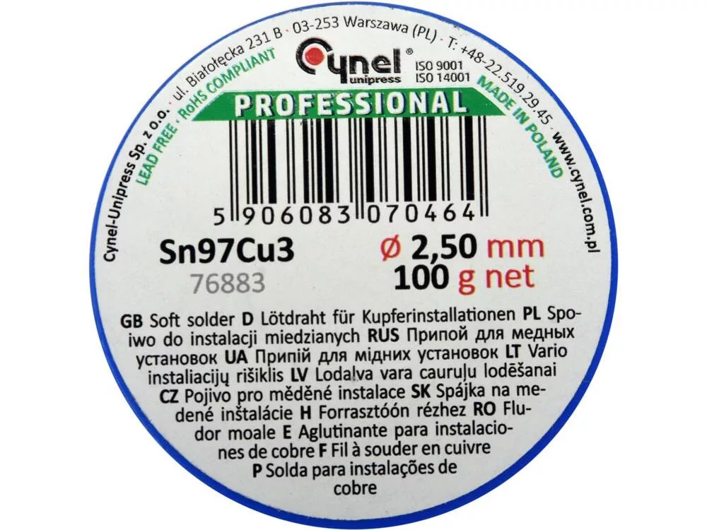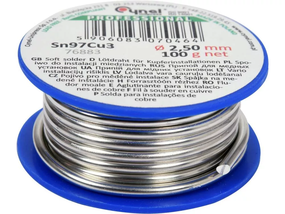 3 %-os rézadalékkal, réz- vagy sárgarézcsövek és szerelvények lágyforrasztásához. Olvadáspontja 220 °C és 310 °C között
