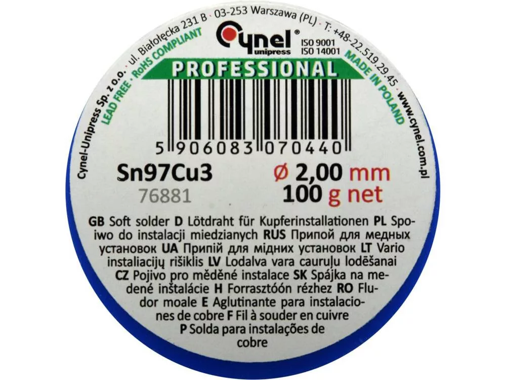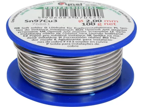 3 %-os rézadalékkal, réz- vagy sárgarézcsövek és szerelvények lágyforrasztásához. Olvadáspontja 220 °C és 310 °C között