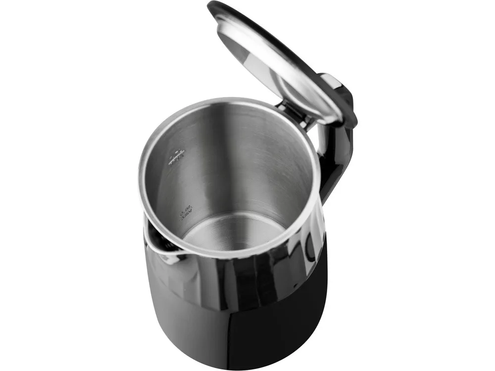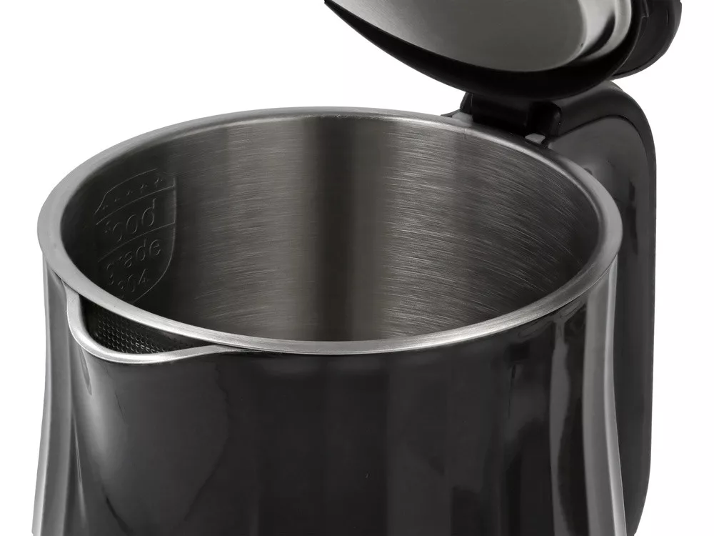 A duplafalú technológiának és a hideg tapintású bevonatnak köszönhetően a vízforraló háza nem melegszik fel, még akkor sem, ha a víz eléri a 100°C-ot. Ez csökkenti a véletlen égési sérülések kockázatát a felületén.