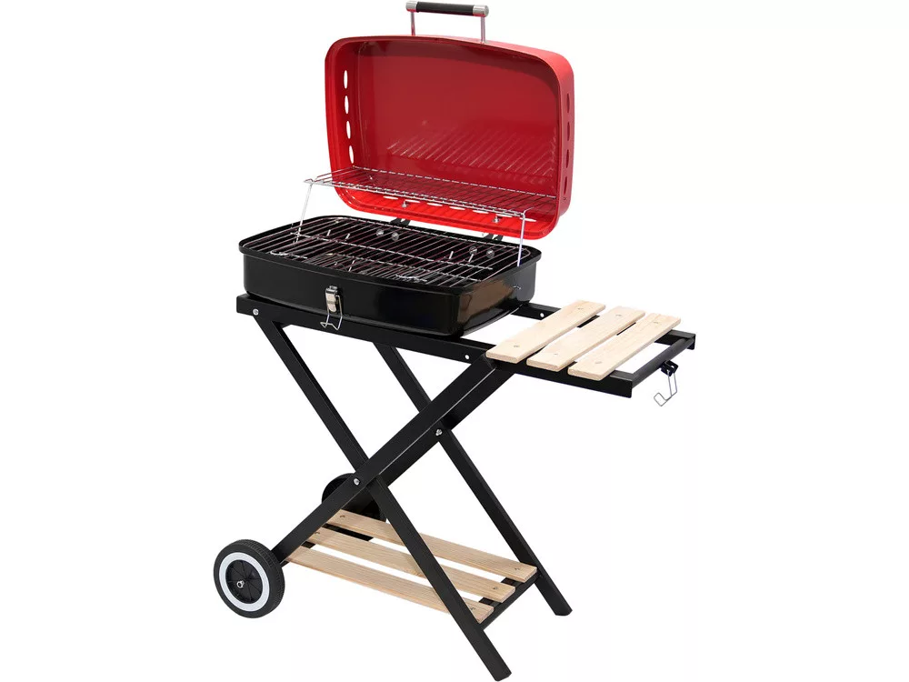 Faszenes összecsukható grill, krómozott grillráccsal, porszórtan festett fedéllel.