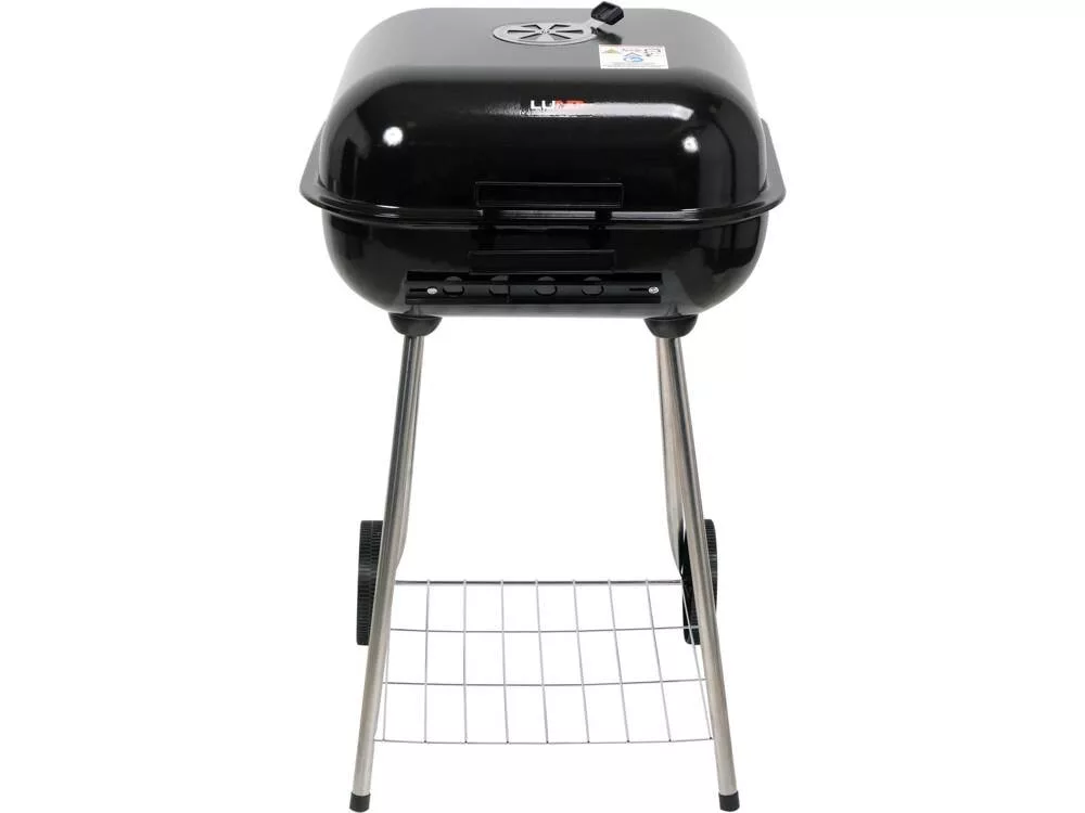 Az alsó hálós polc lehetővé teszi szén és tartozékok tárolását.