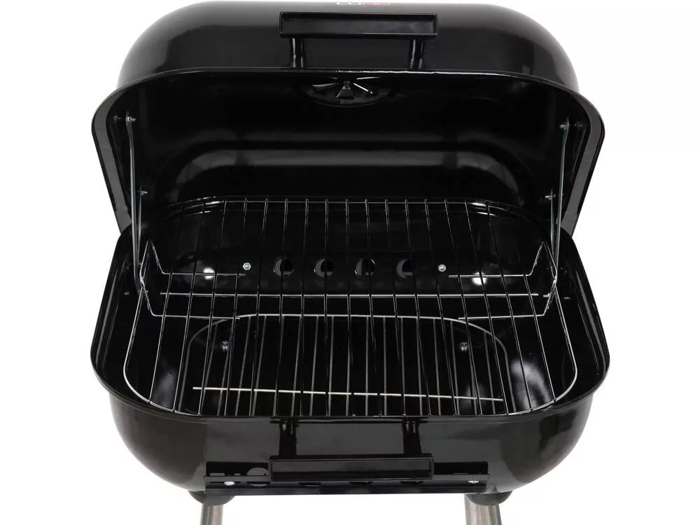Kerti grill téglalap alakú burkolattal. Krómozott rostély, mérete 40x45 cm.