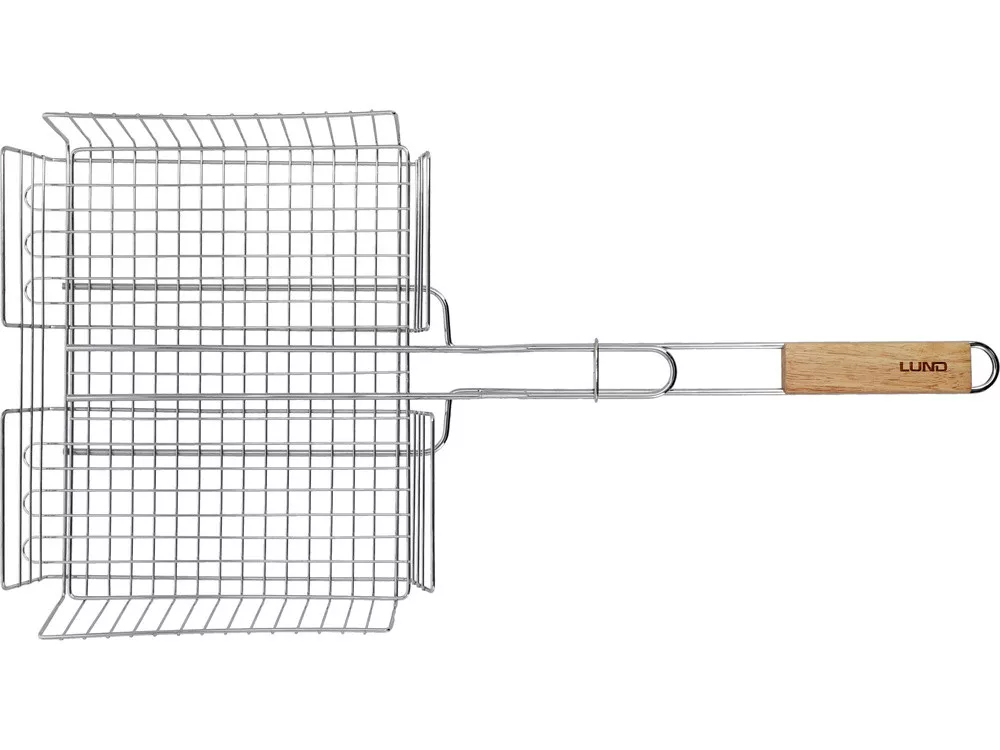 Grillrács, hordozható, összecsukható, krómozott, könnyen tisztítható.