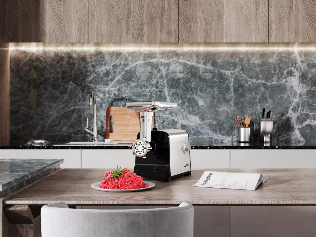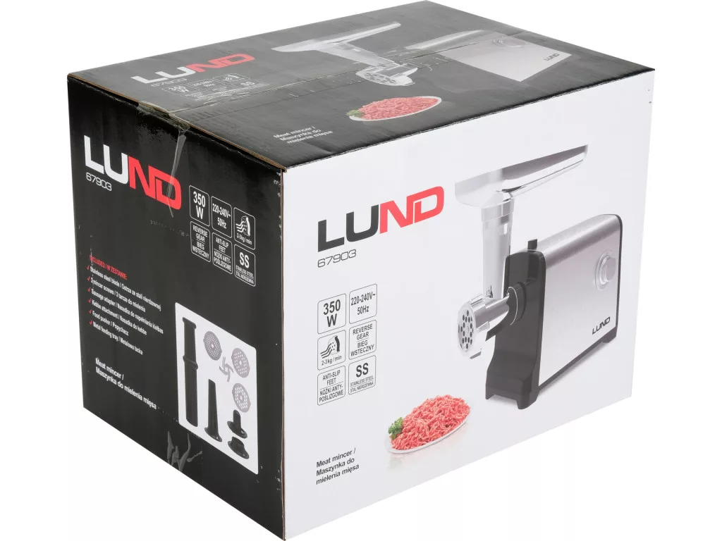 350 W-os húsdaráló, amely gyorsan és egyenletesen darál különböző típusú húsokat, elősegítve a frissen készített darált hús, a házi kolbász és a kebbe elkészítését. A készülék lehetővé teszi a felhasznált összetevők részletes kontrollálását, a darálás finomságát pedig a beépített szitákkal lehet szabályozni. A darálás során a hús szerkezete és íze megőrződik, miközben a készülék stabilan, biztonságosan működik.