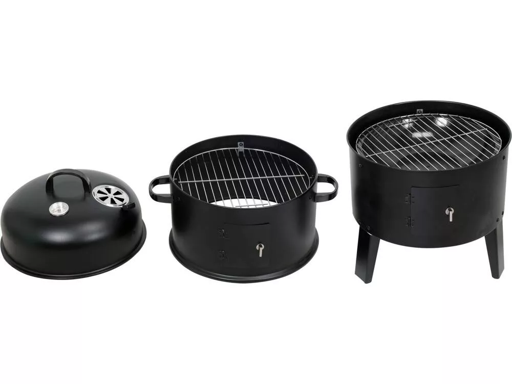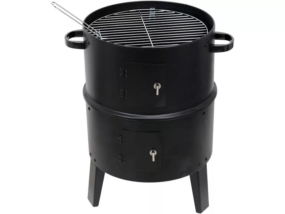 Kerek Füstölő 51x42x80 cm-es, 3 az 1-ben - használható grillezésre, füstölésre és párolásra.