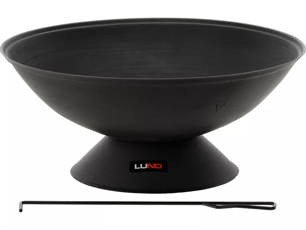 A lekerekített tál biztosítja, hogy a fa ne essen ki a halomból, és a tűz kialvása után könnyű kitakarítani.