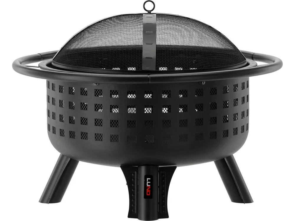 Acélfedél hőálló zománc bevonattal ellátott hálóval. A fedél korlátozza a szikrák átjutását a máglyáról kifelé.
