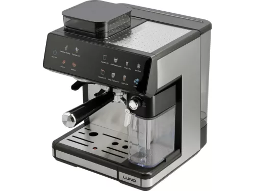 LUND 68501: 11-programos darálós nyomásos kávéfőző tejhabosítóval, 20 bar, Thermoblock, automatikus tisztítás, 2,6 l víztartály, 500 ml tejtartály, rozsdamentes acél burkolat.