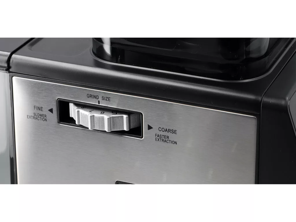 Állítható kávéőrlő rendszer – 20 fokos őrlési beállítás, különböző kávéfőzési módszerekhez. A Anti-Clog Grinding System™ megakadályozza a kávé elakadását. Beépített őrlő biztosítja az egyenletes szemcseméretet, kiemelve a frissen főzött kávé teljes aromáját és ízét. A malom teljesítménye 150 W.